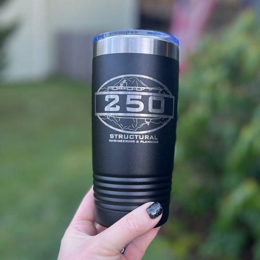Code 250 Laser Engraved Travel Coffee Tumbler