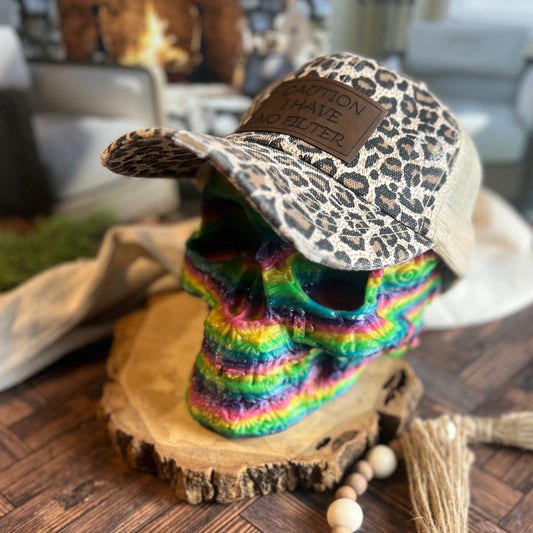 Caution I have no Filter Leopard Distressed Ponytail hat
