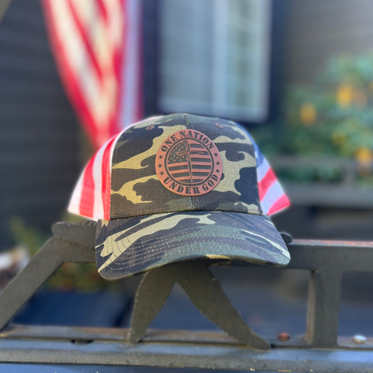 One Nation Under God Camo/American Flag Otto Classic Fit Trucker Hat