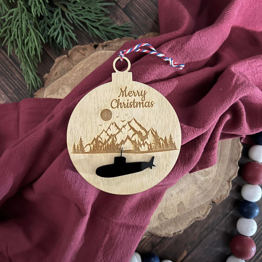 Submarine Wood Christmas Ornament
