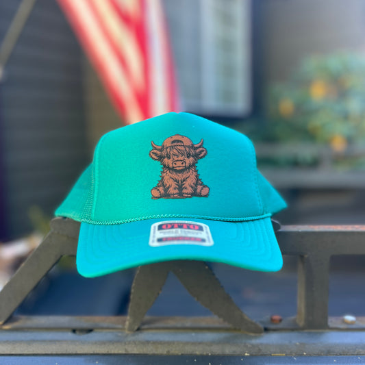 Highland Cow with Baseball Cap Otto Foam Front Trucker Hat