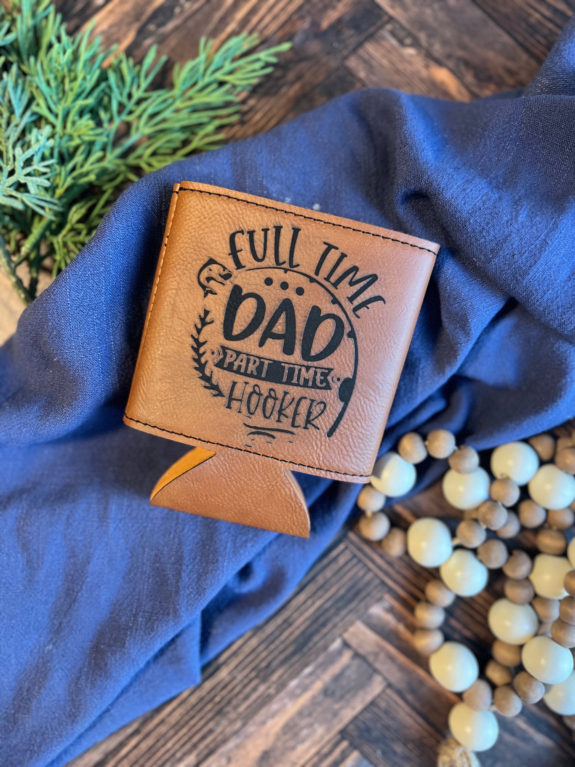 Full Time Dad Part Time Hooker Leatherette Can Cooler