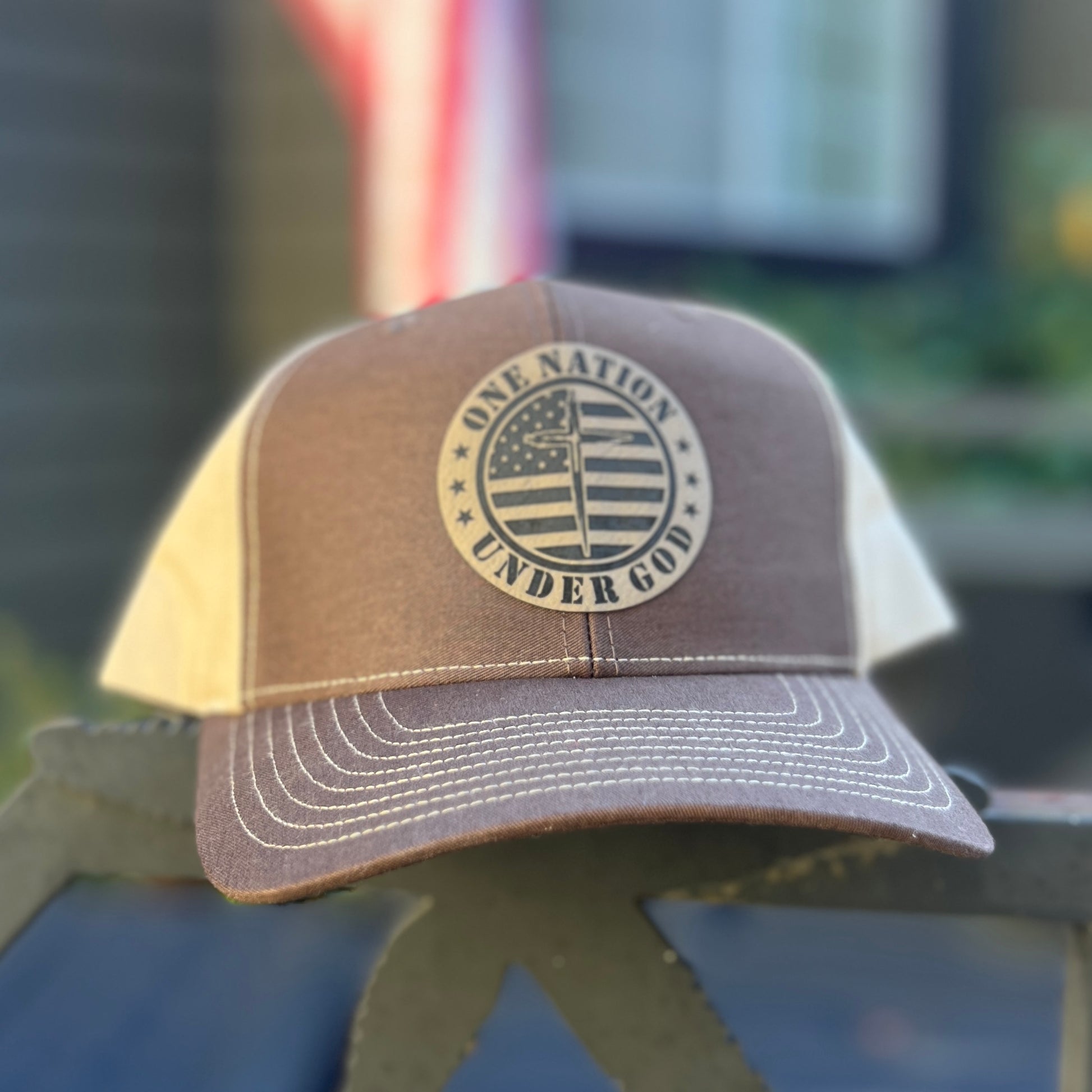 This is for a Richardson 312 coffee/khaki hat One Nation Under God leather patch.