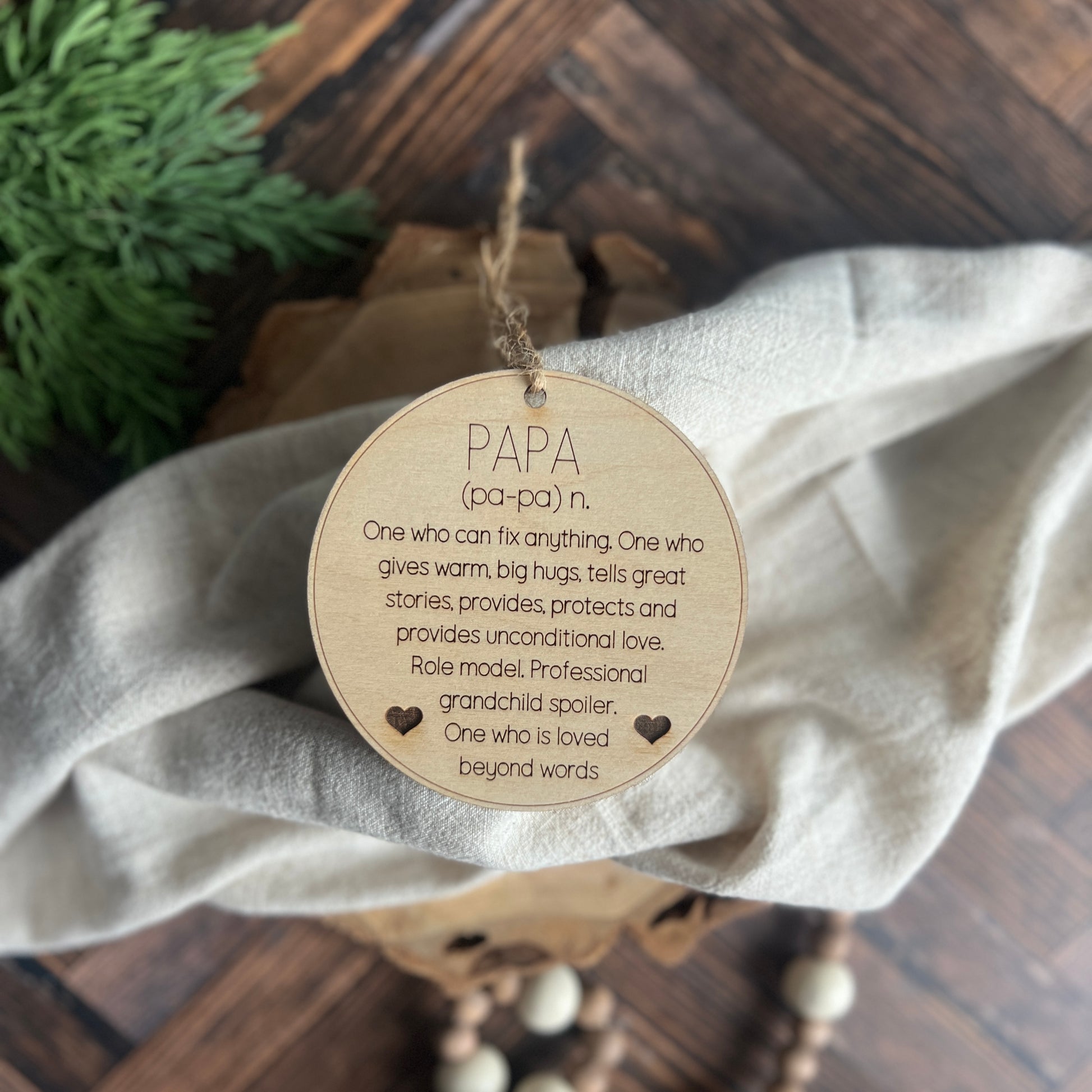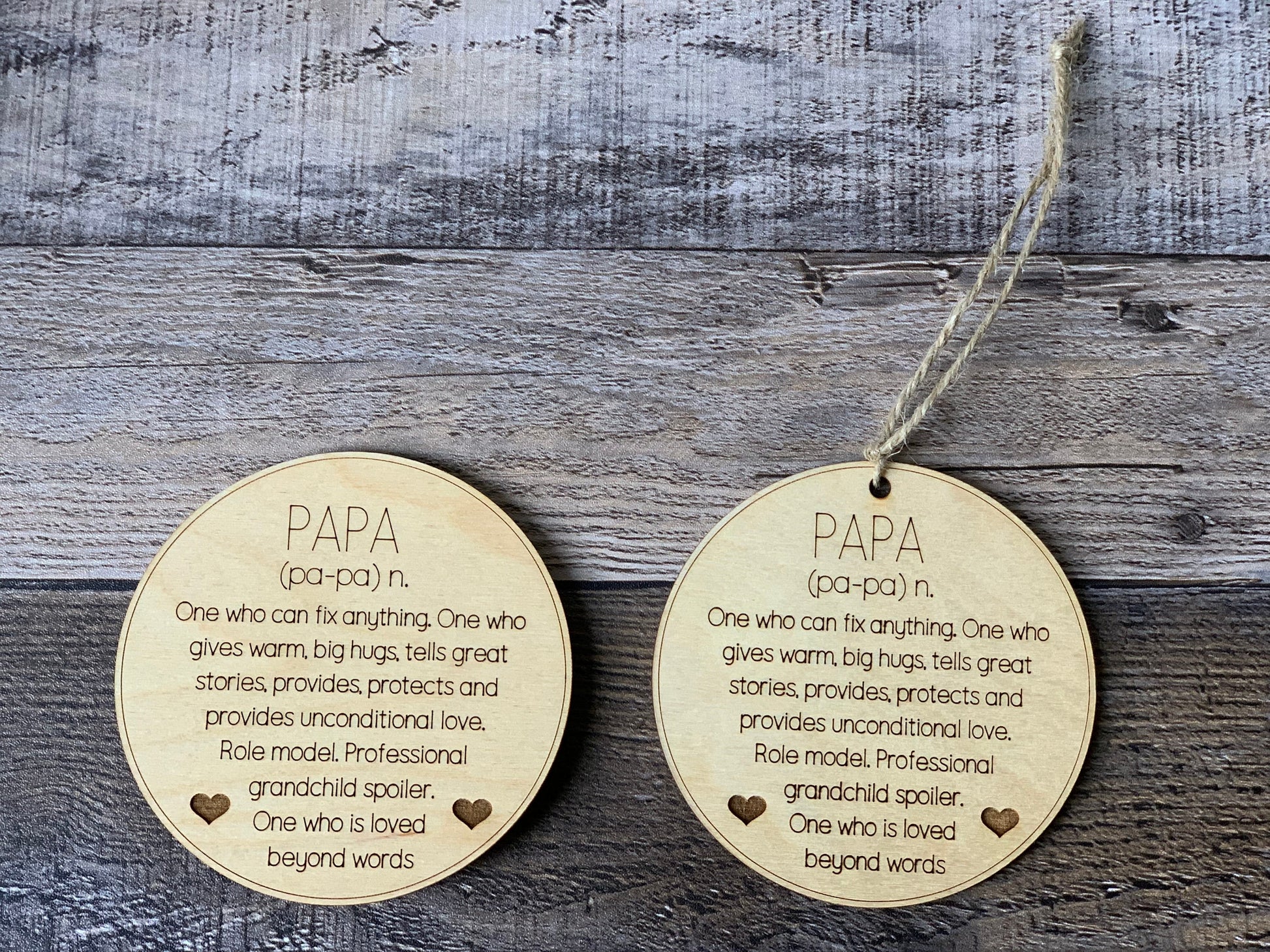 These Papa mangets are the perfect Fathers Day Gift this year. He will love having it on his fridge, hanging it on the wall, or on the tree. It comes with a magnet on the back or hanger for an ornament or wall hanging.