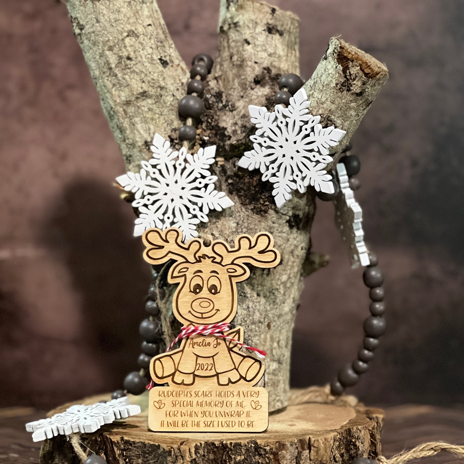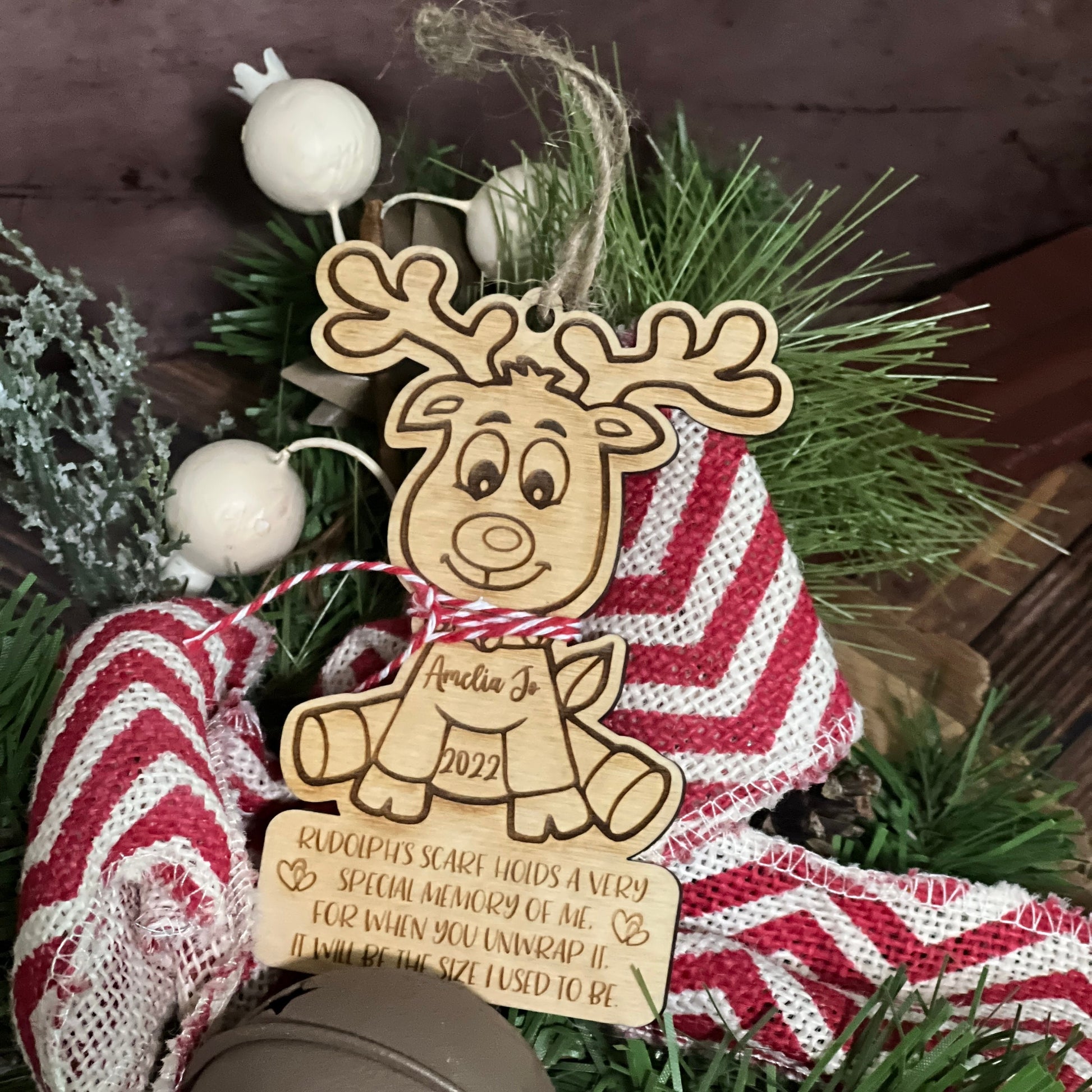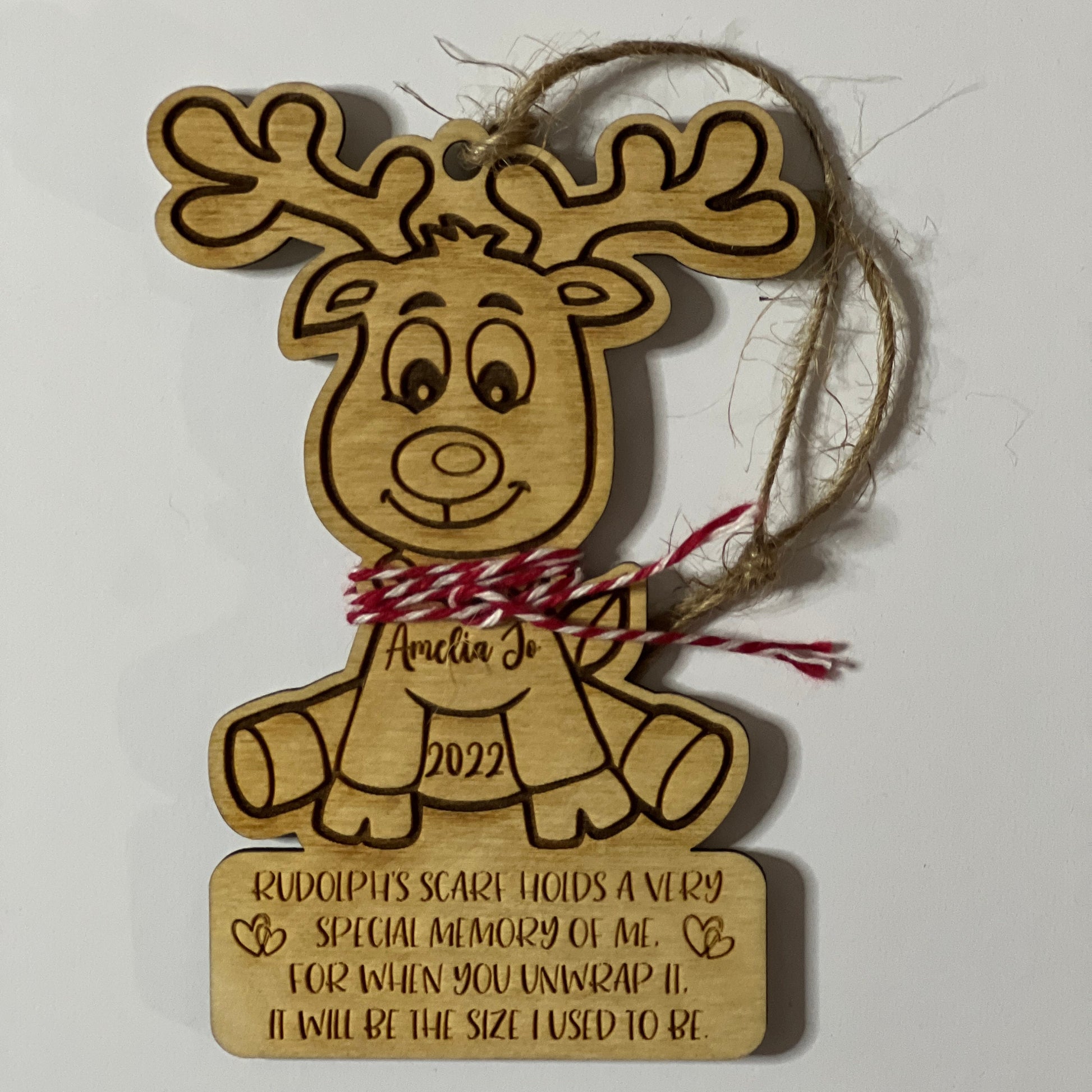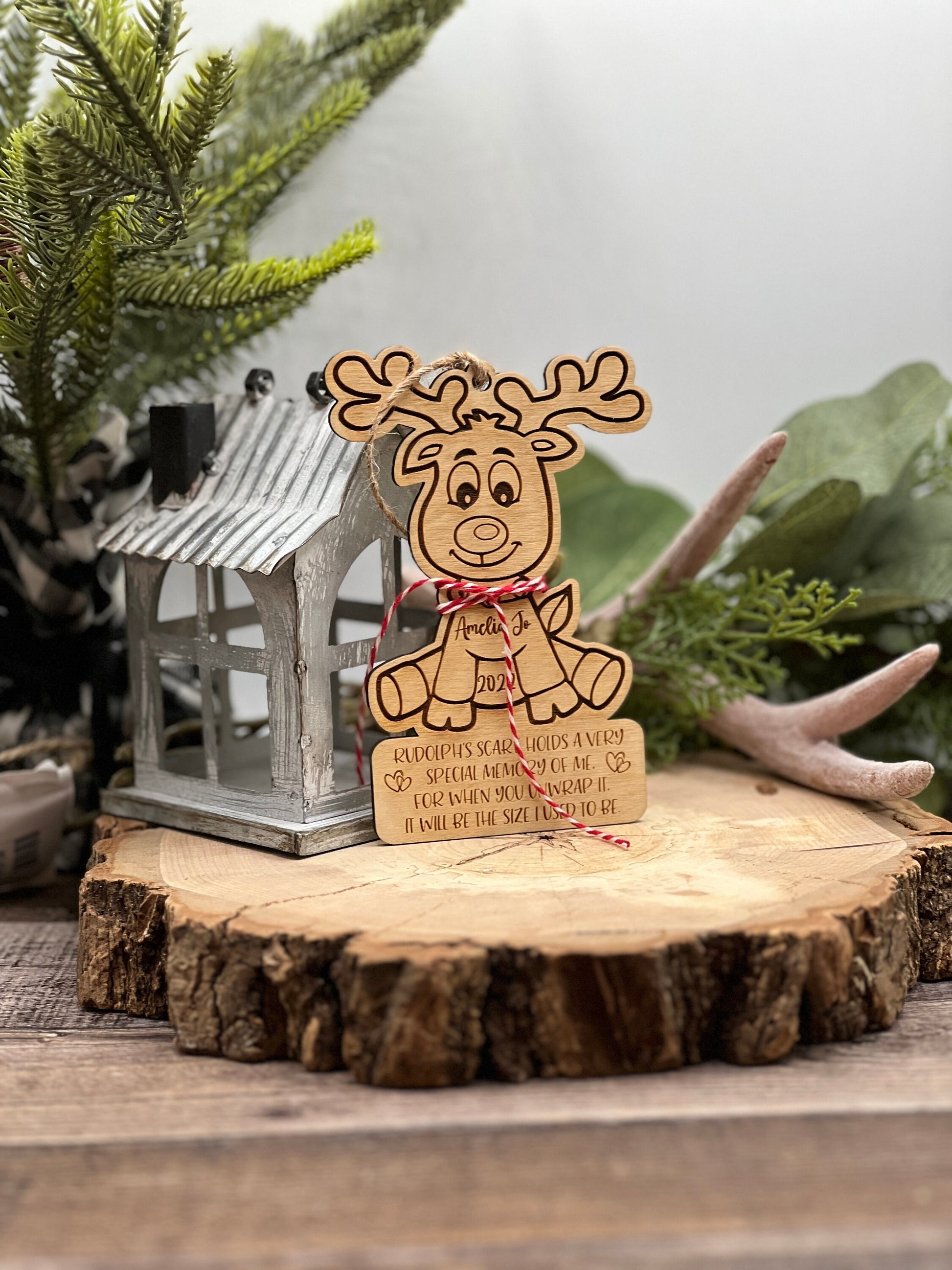 This personalized reindeer kids measurement ornament is the perfect gift for mom this year. This Christmas Gift is a keepsake ornament she will cherish for years to come. Each persoanalized ornament is laser engraved and cut with your child's name and year. It comes with a small ball of bakers twine to measure the height of your little one to wrap around as a scarf for the reindeer. This way you will always remember the height of your baby.