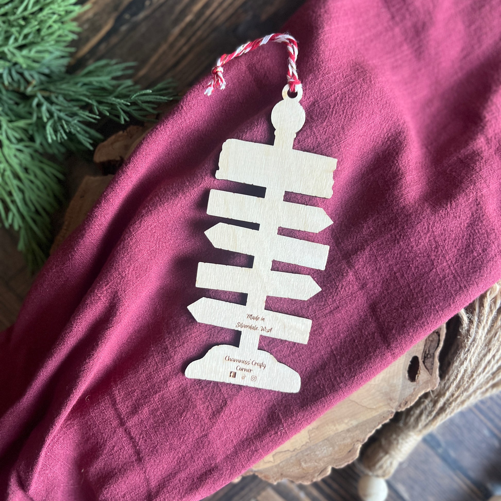 Laser-Engraved Wooden Santa Stop Here Ornament