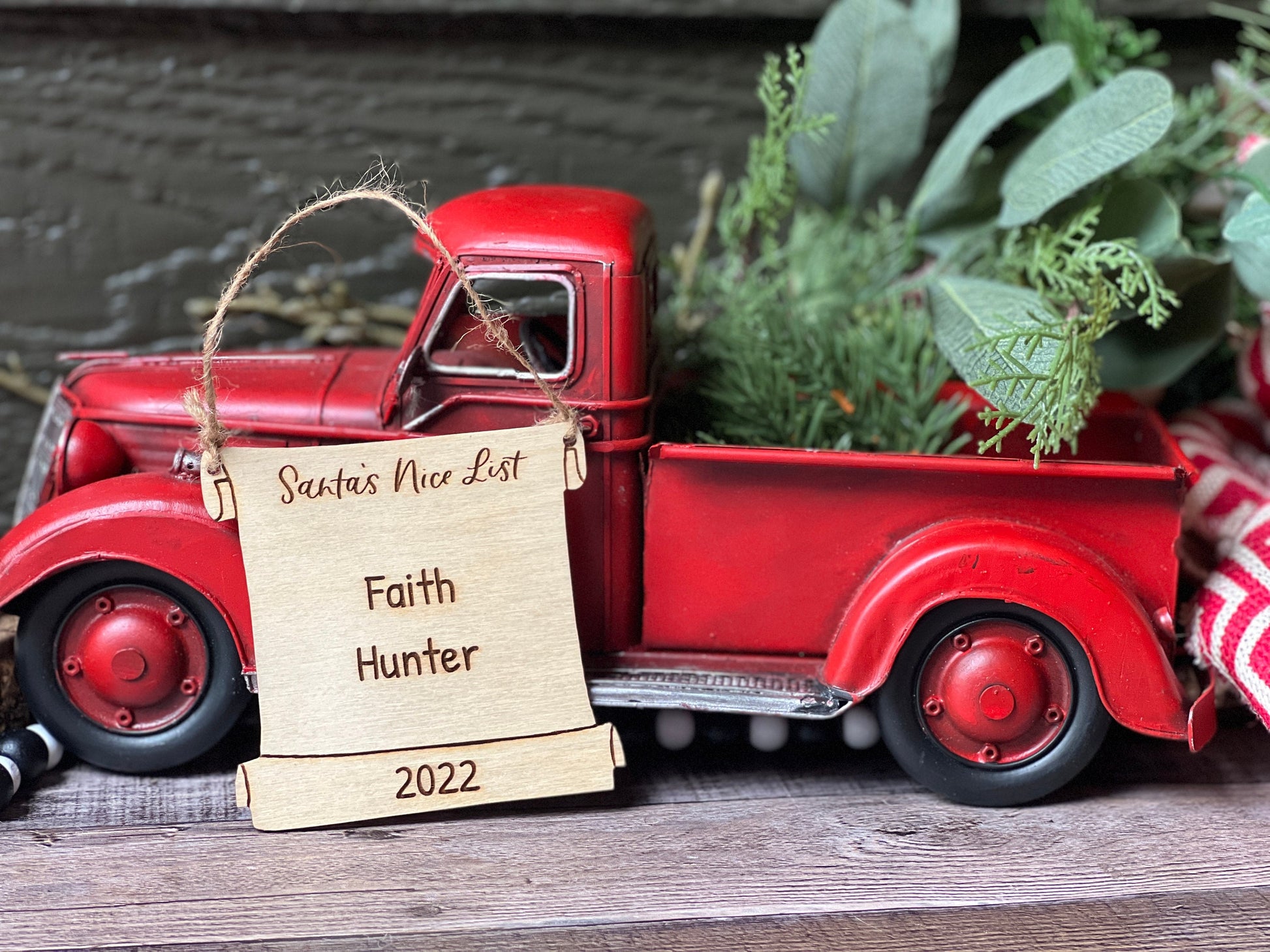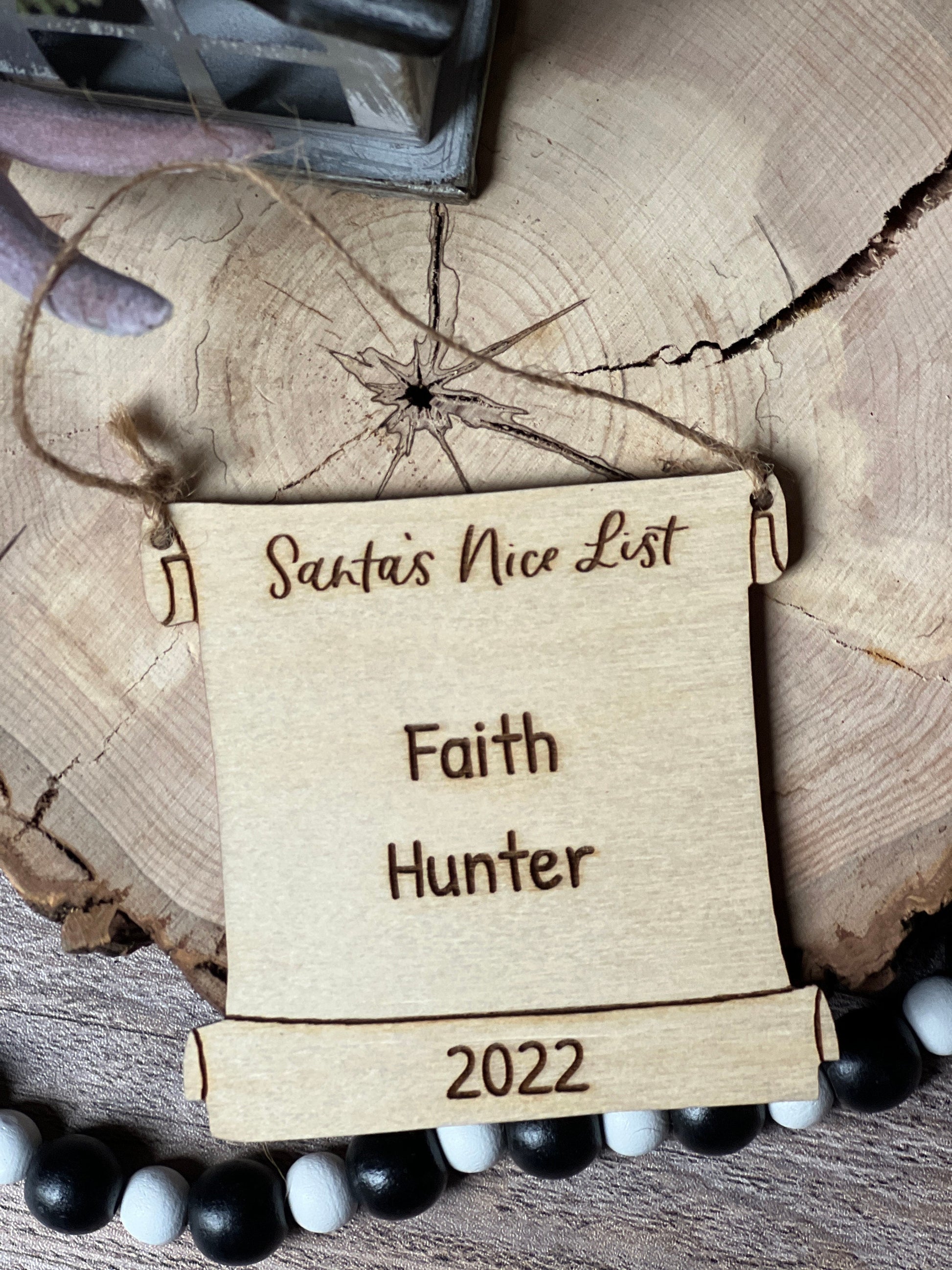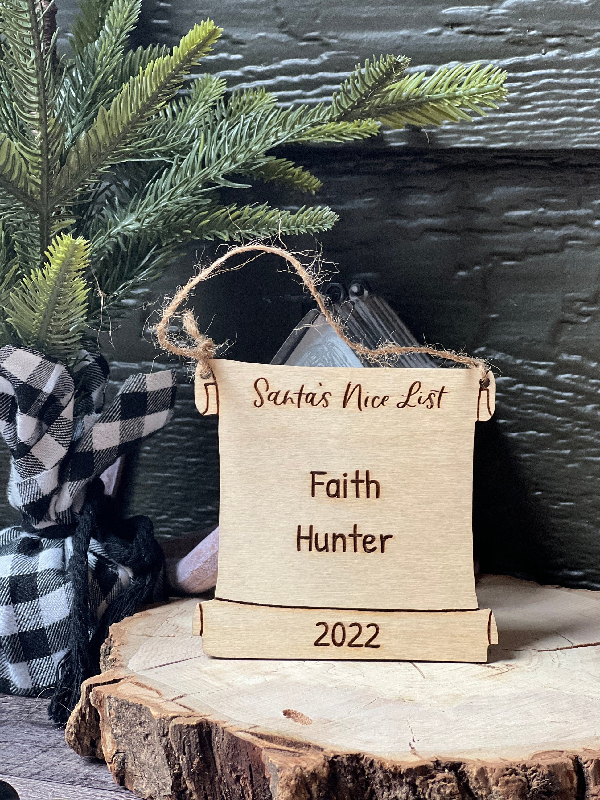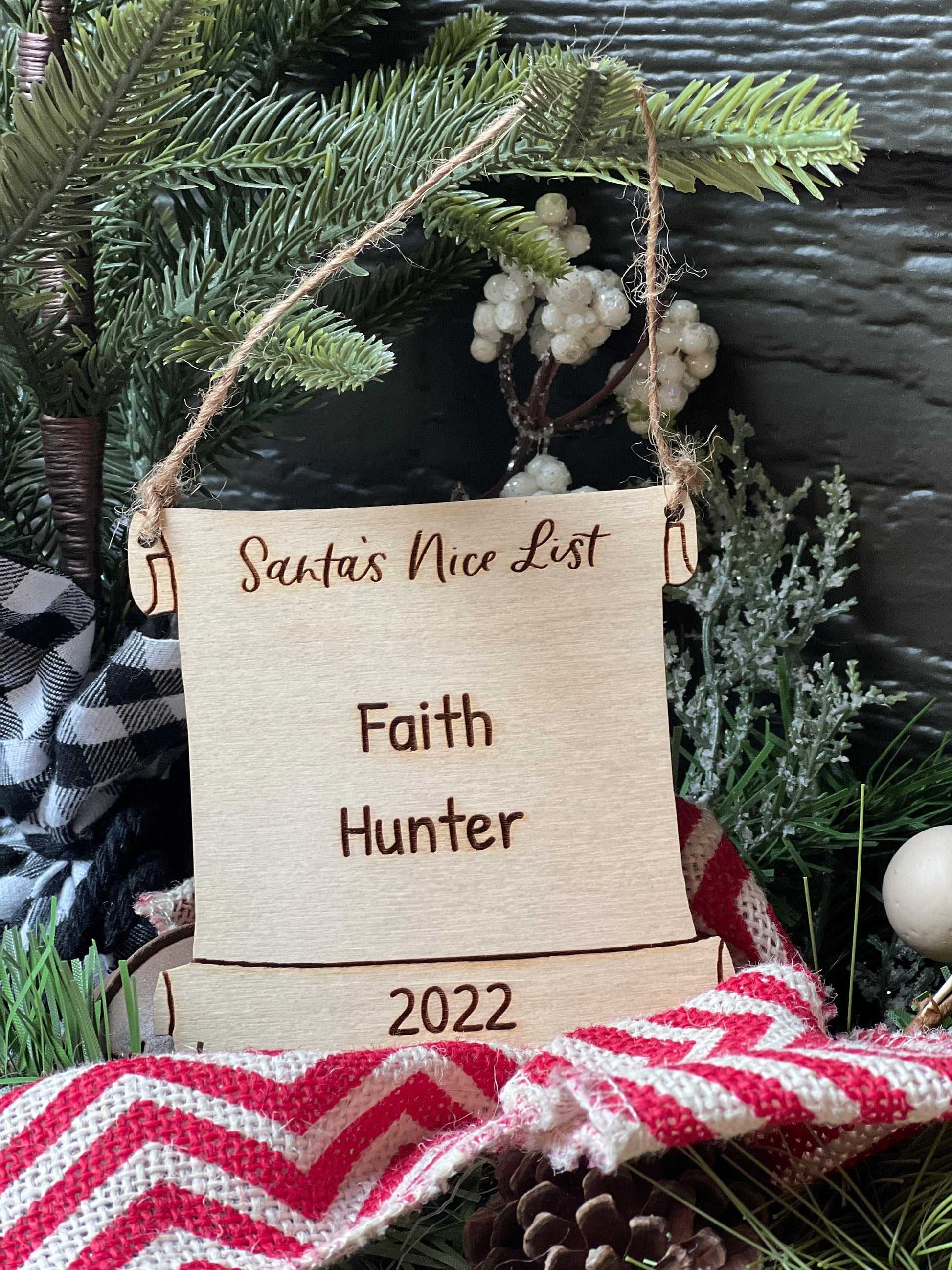 This adorable personalized Santa's Nice List ornament makes a great gift for kids to add to a Christmas Eve box this year. This naughty or nice custom wood ornament is laser engraved and cut with a jute hanger to go on the tree every year to start a new tradition.