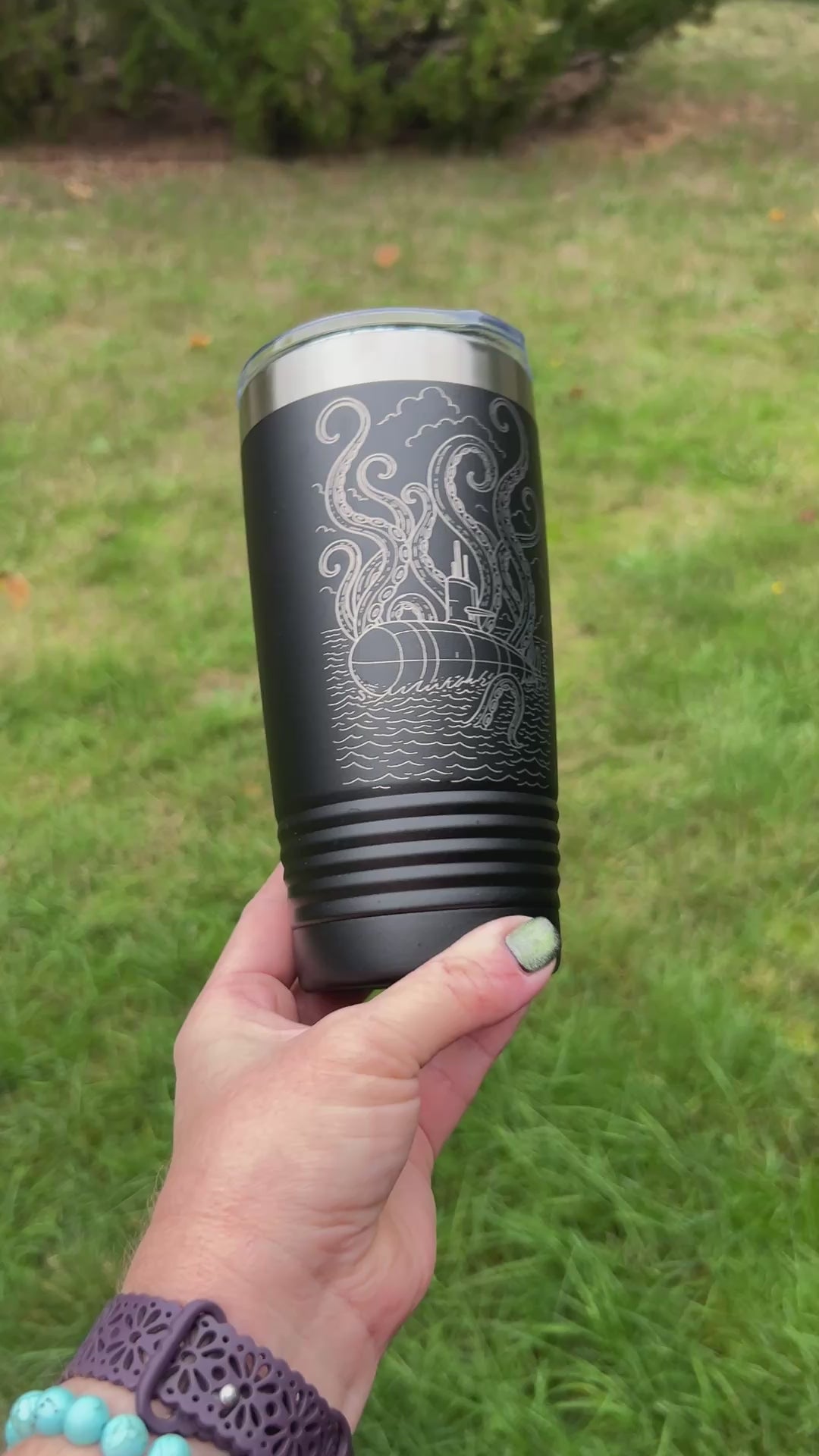 This striking laser-engraved travel mug featuring a Submarine and Kraken design is the perfect way to show your love and support for the proud Submariner in your life. Whether it’s for a birthday, deployment gift, or just because, this tumbler is a fun and meaningful way to celebrate their service and adventurous spirit.