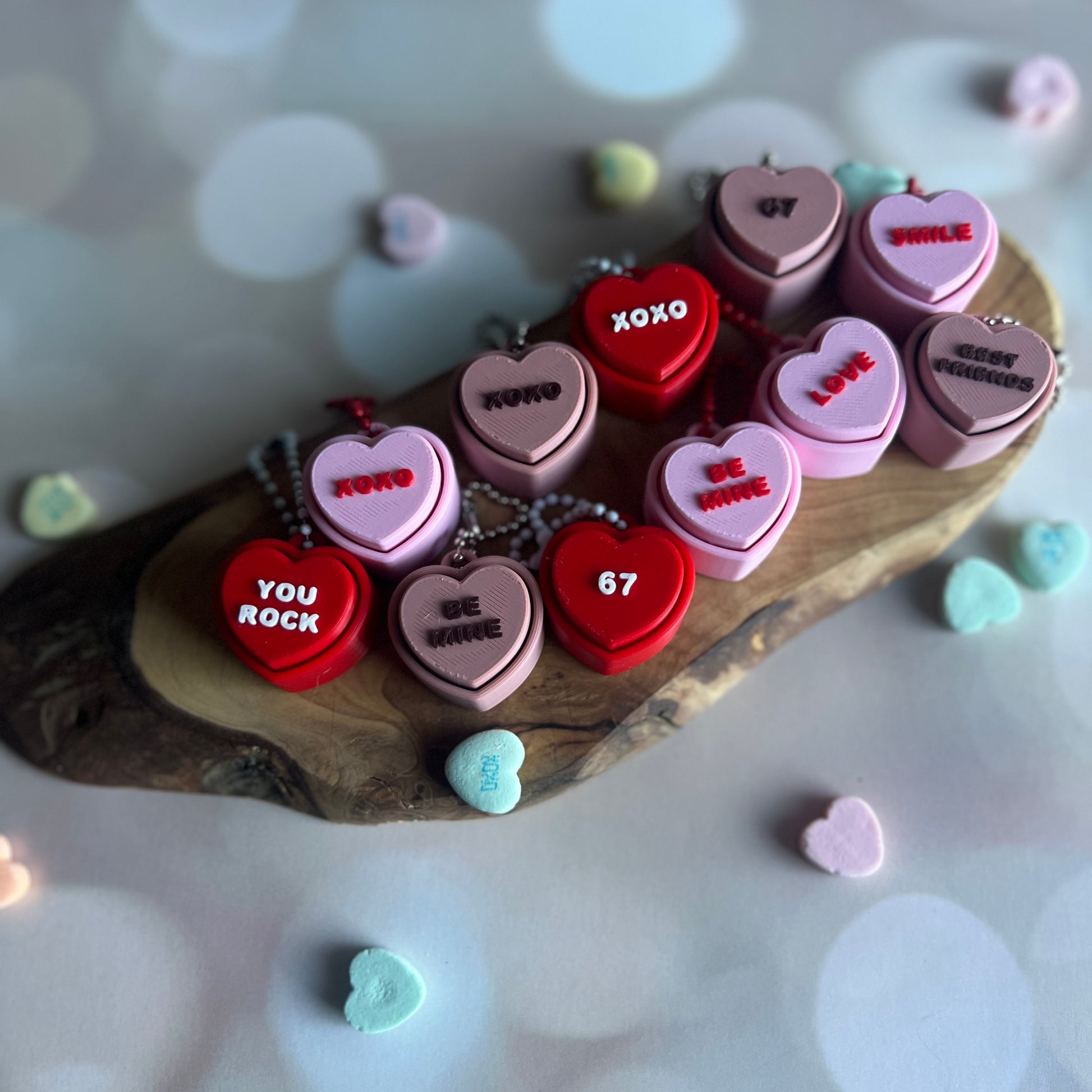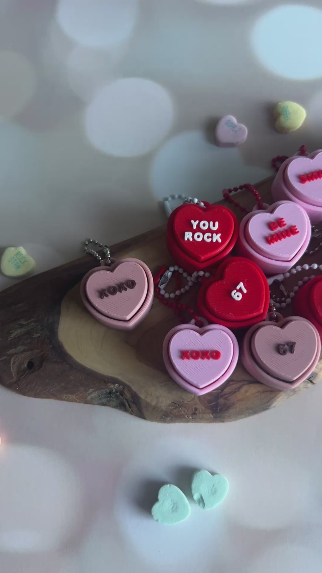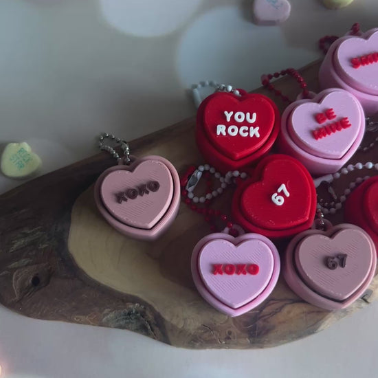 Each Sweet Heart Clicker is 3D printed using durable PLA and finished with a ball bead chain, making it easy to attach to keys, backpacks, or gift bags. This small but playful accessory is great for stress relief, sensory fun, or simply spreading a little Valentine cheer.