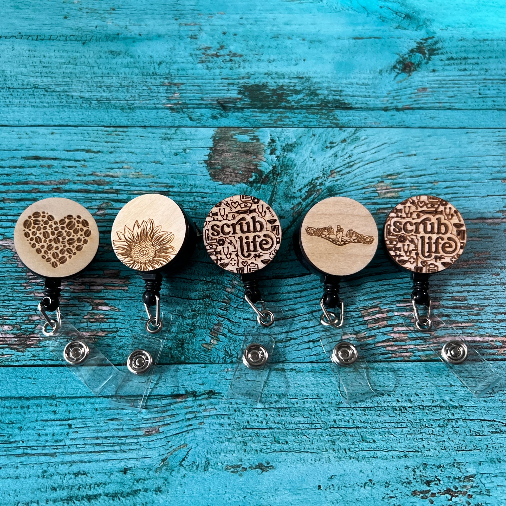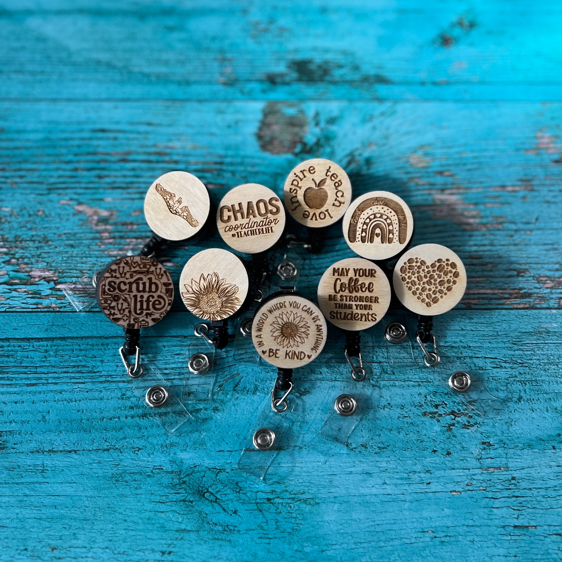 -1.25" Badge Holder with a 23.6 rectractable cord, and 360 Degrees swivel alligator clip -Plywood and Matte finish -Glue