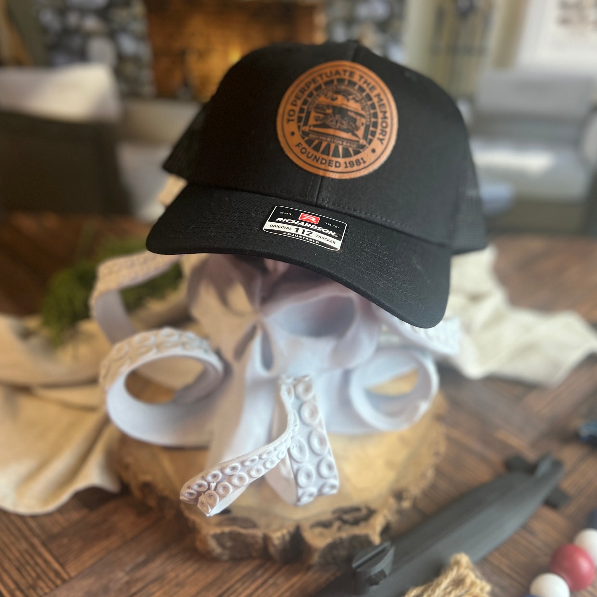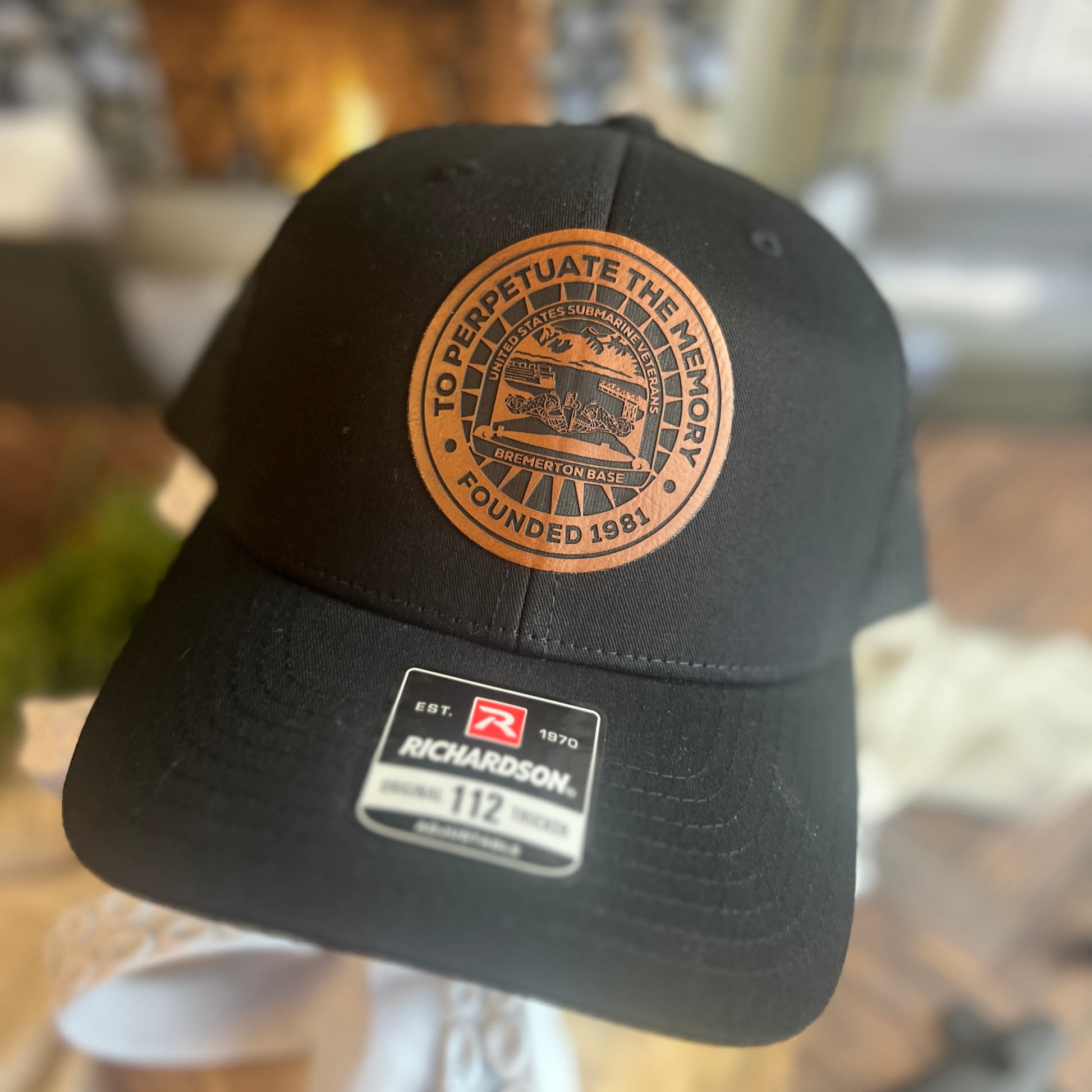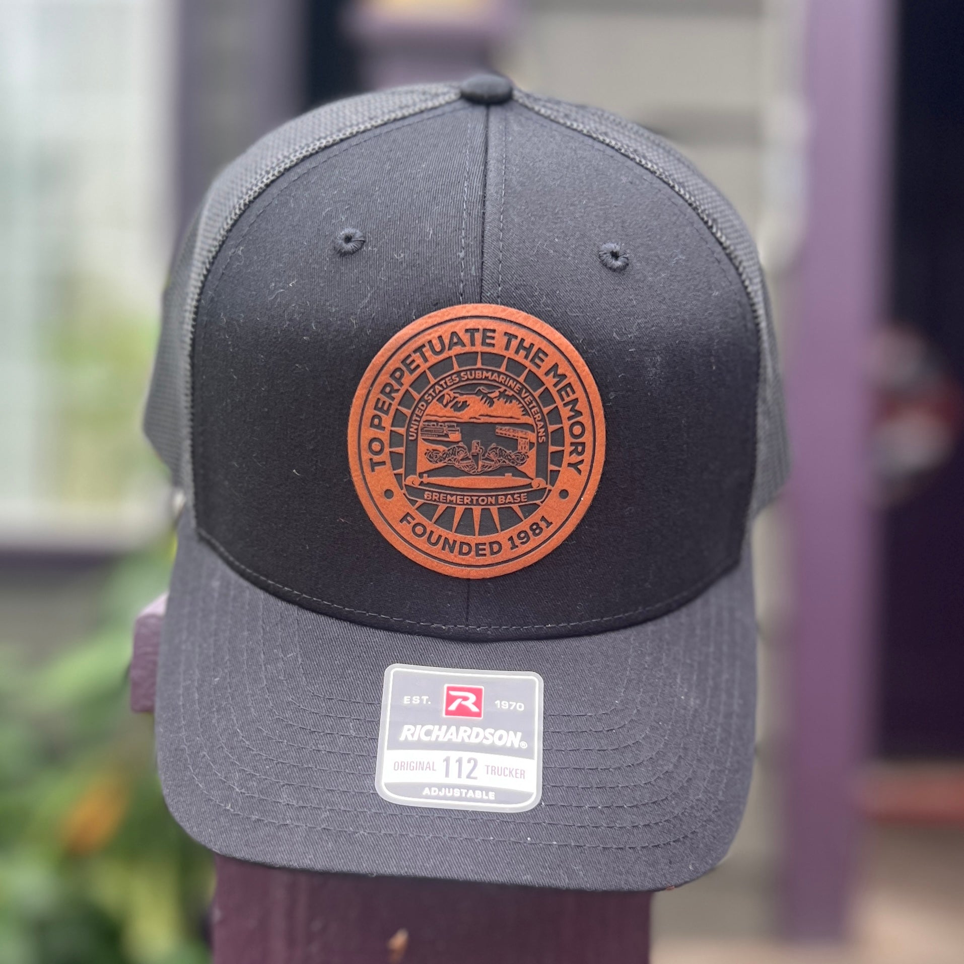 Richardson 112 Trucker Hat with a laser engraved patch with base logo.