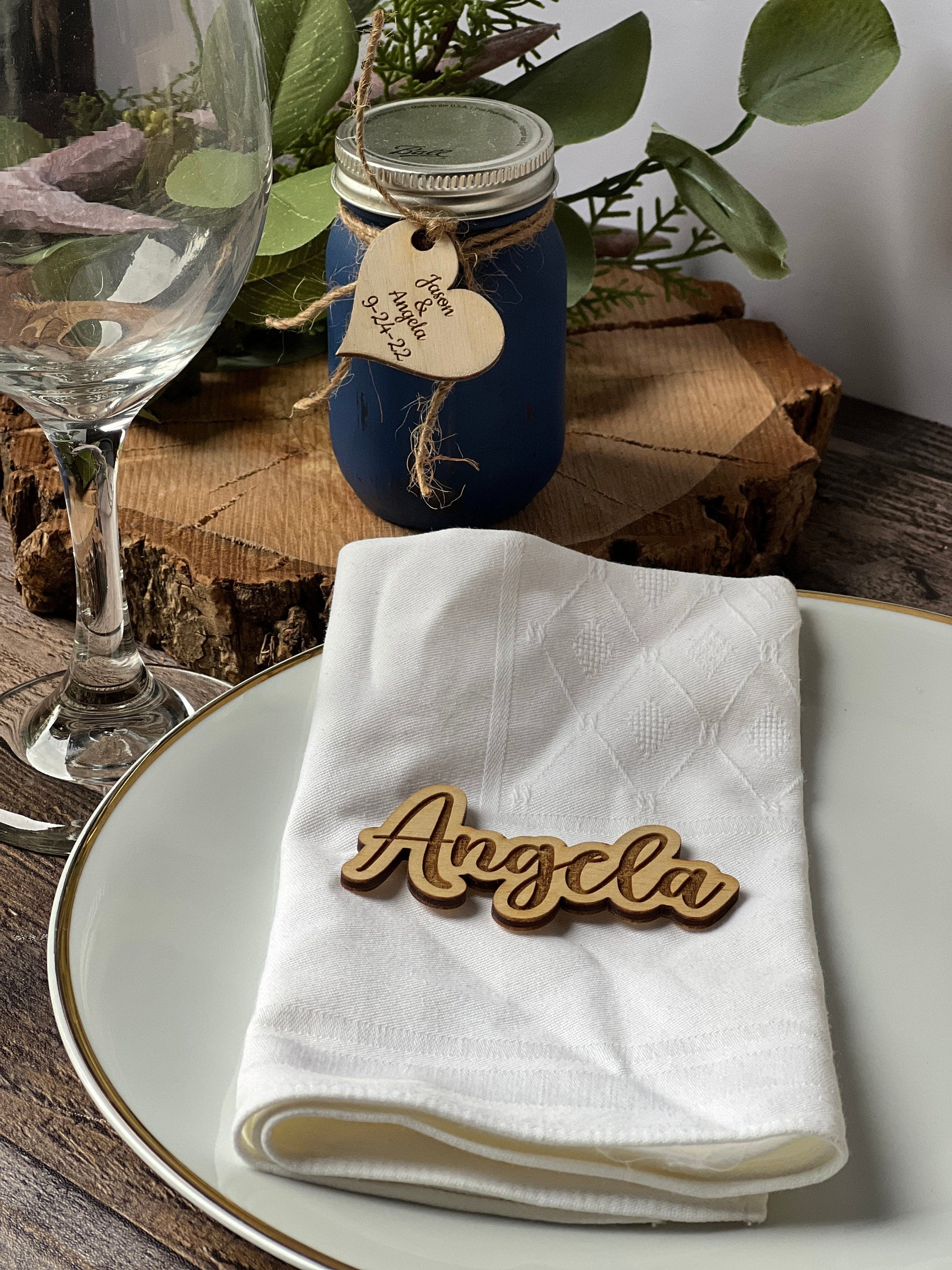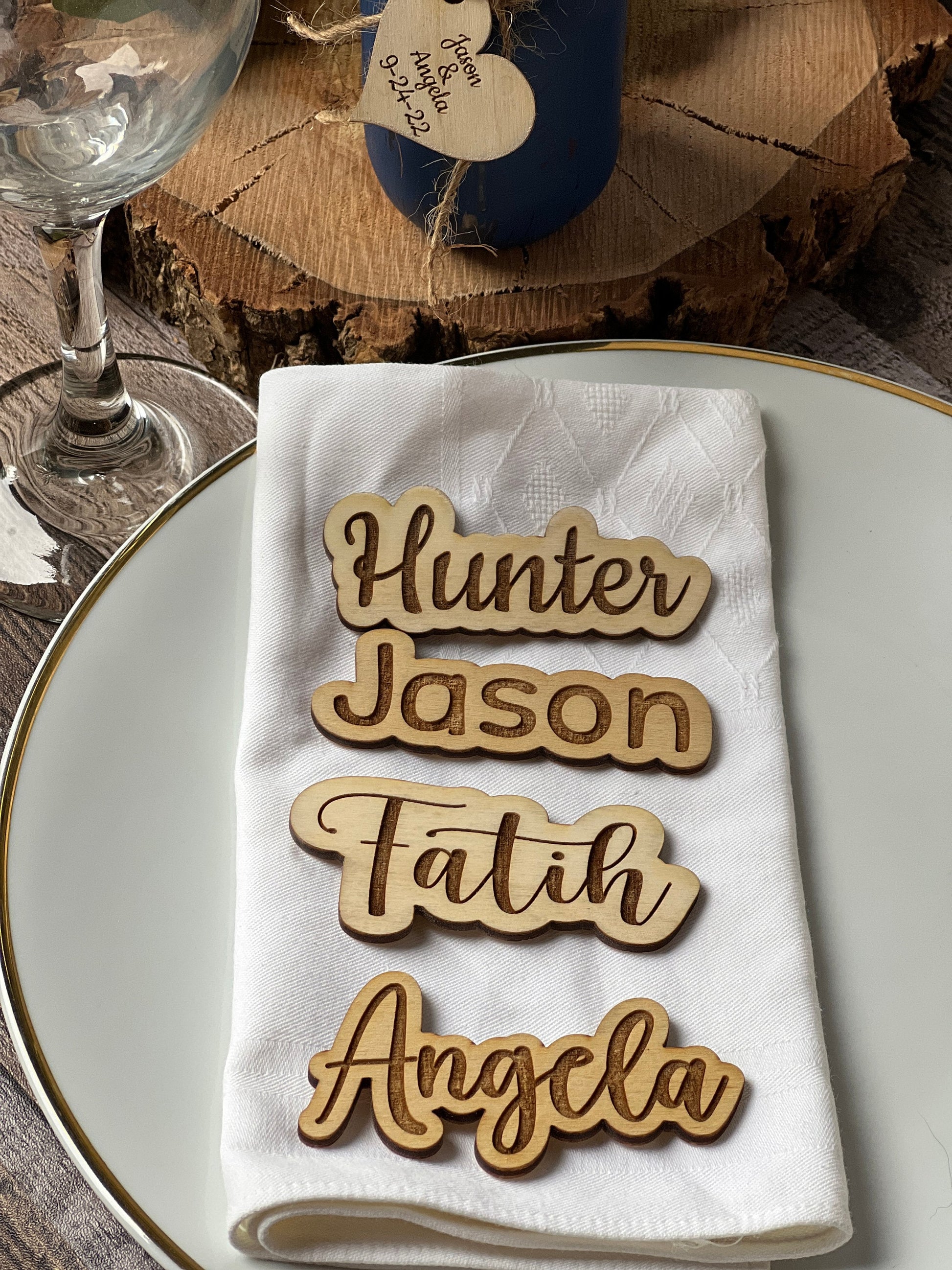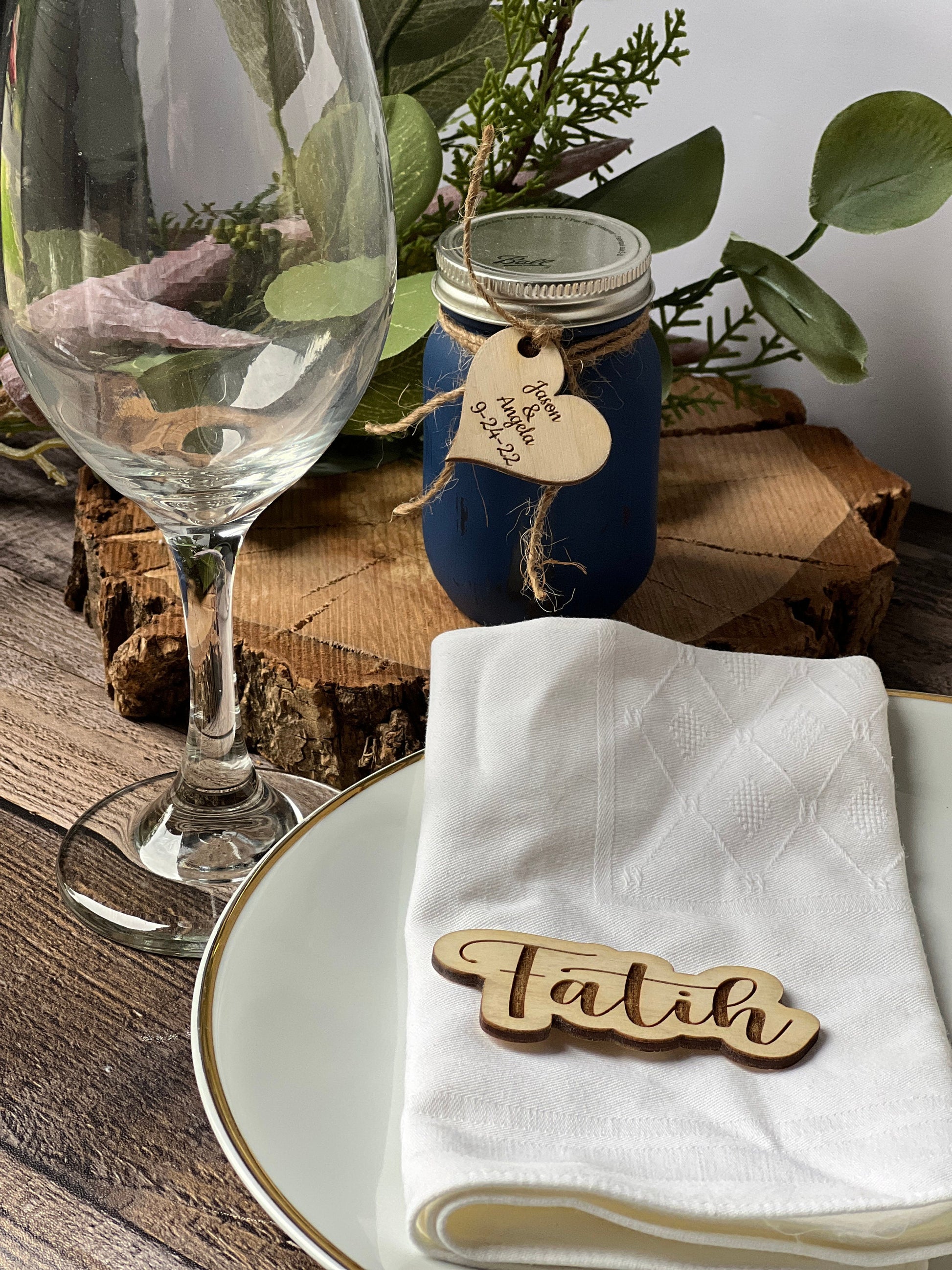 The personalized wedding place cards are the perfect wedding favours for a wedding guest gift. These wedding table names will be the perfect addition to your rustic wedding decor. Each place card is laser engraved and laser cut on baltic birch plywood and a matte finish.