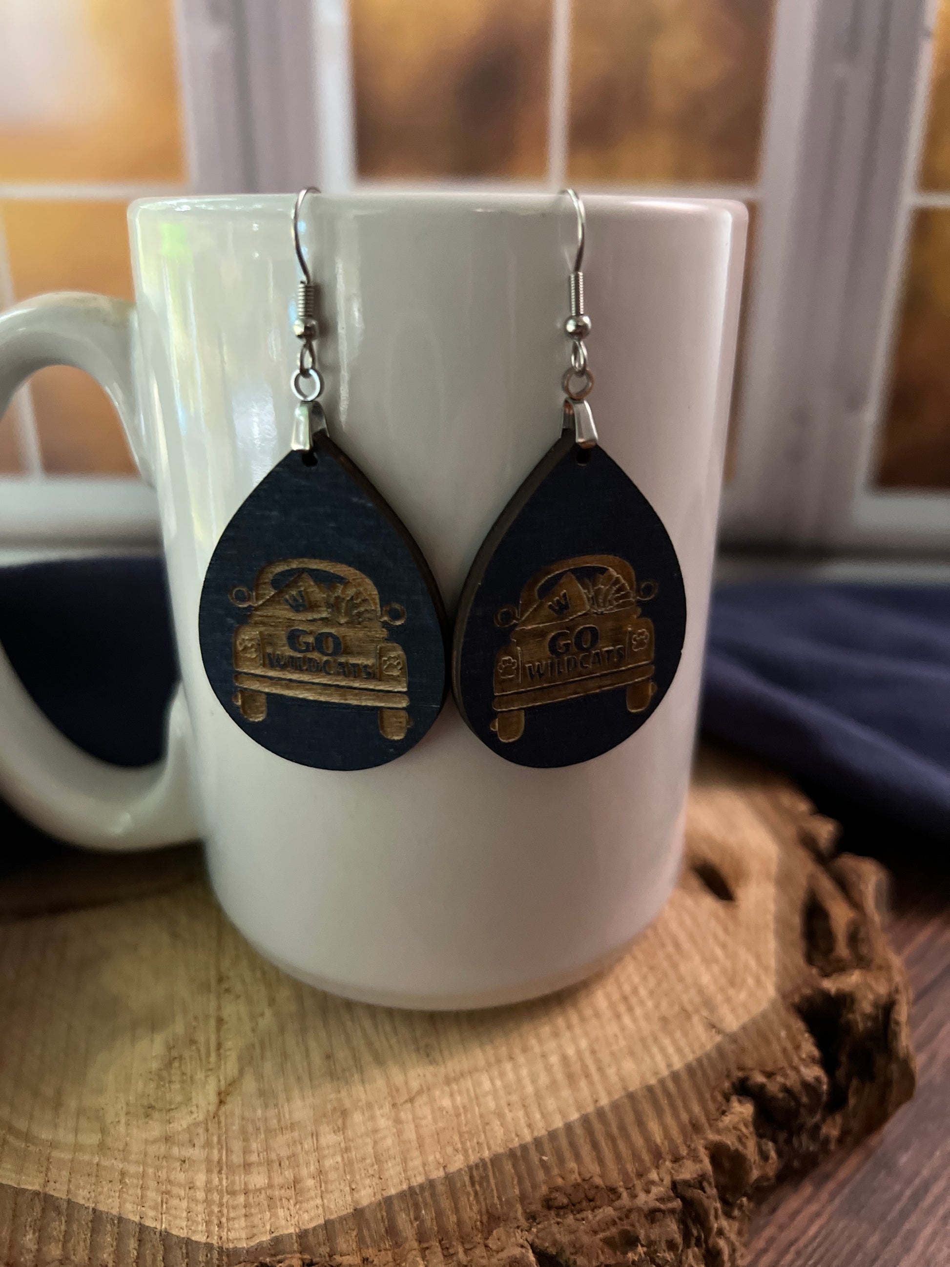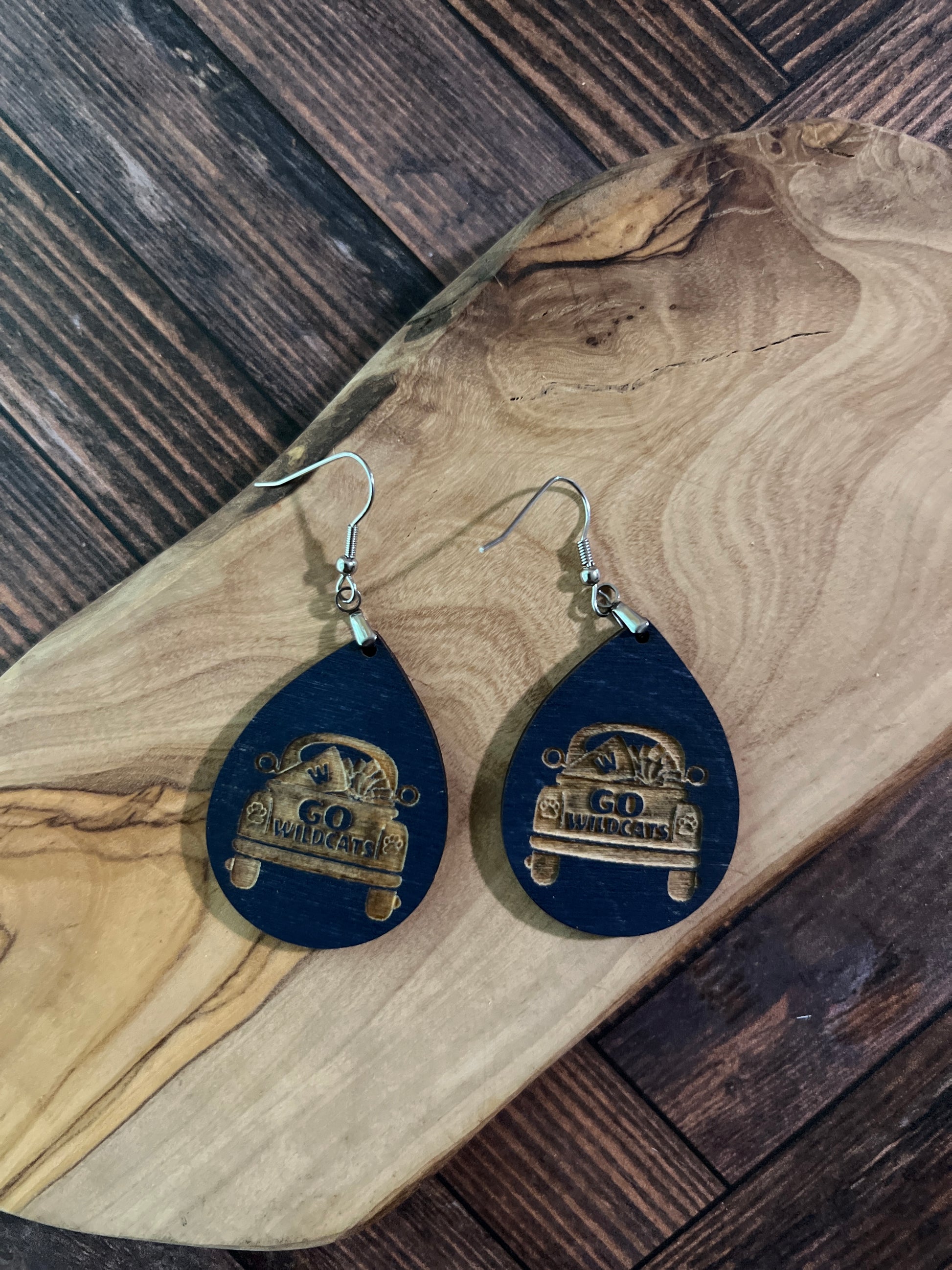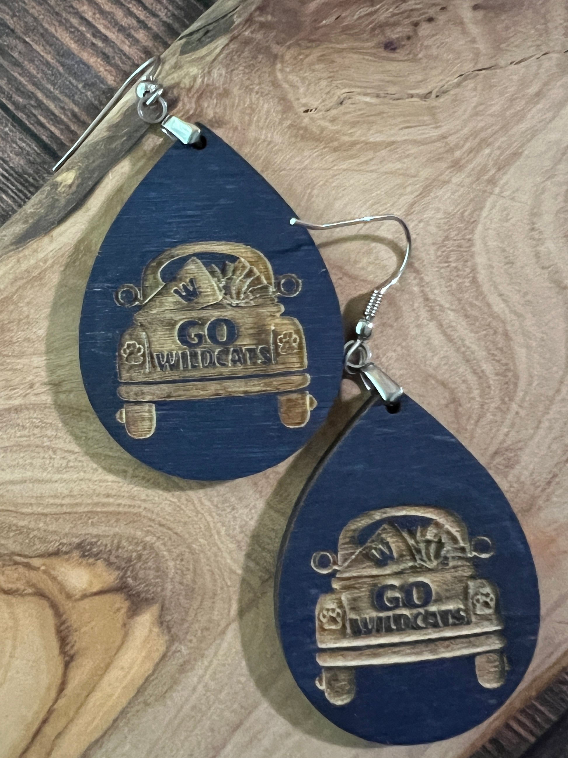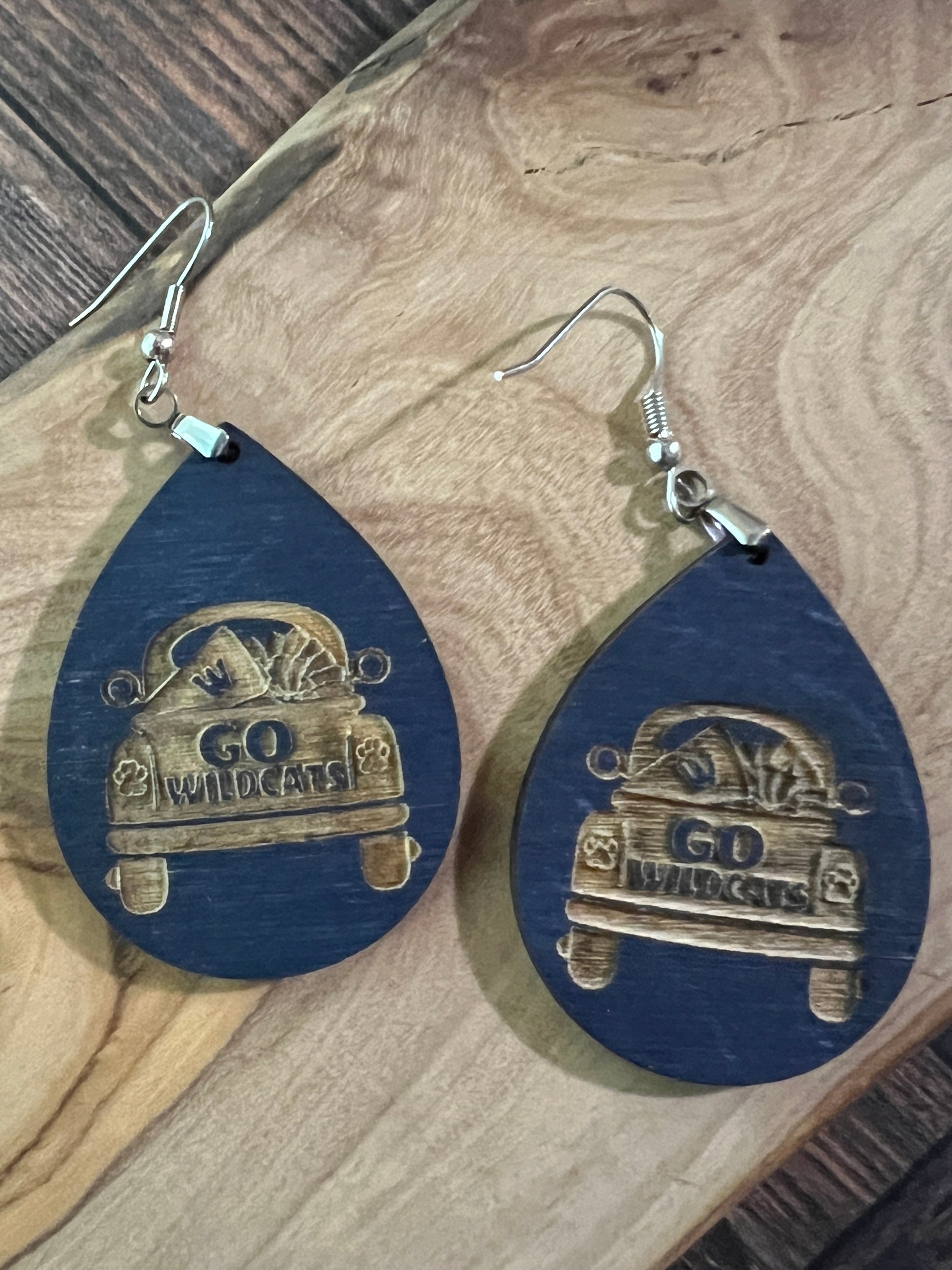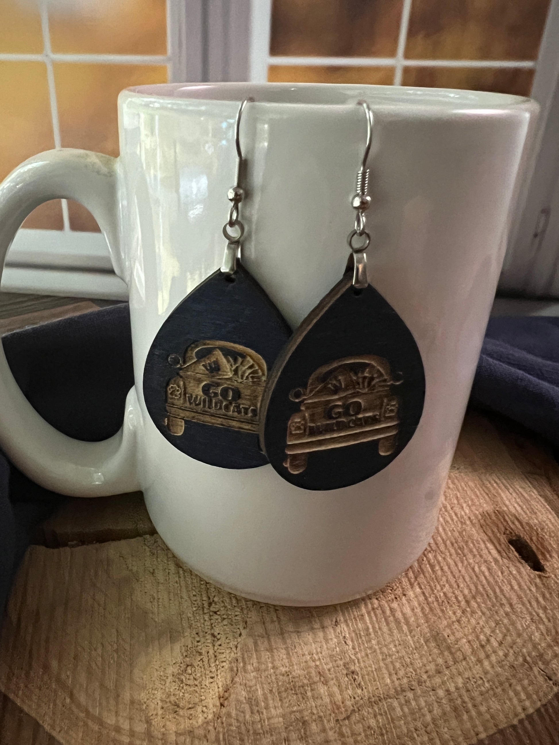 These laser engraved and cut Teardrop Wooden Wildcat earrings would make a stylish and unique accessory to show your support for your team on game day.