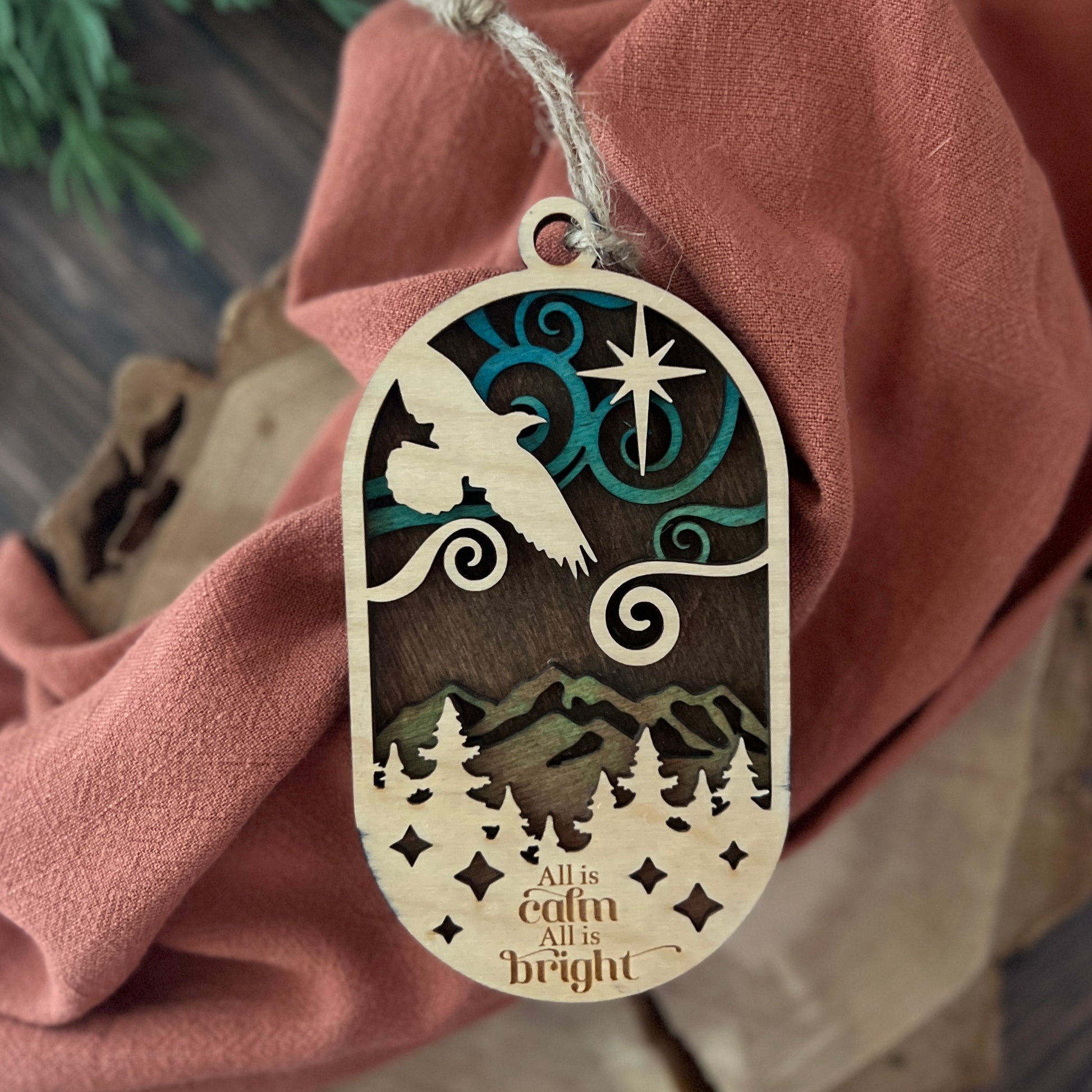 It sounds like a lovely gift idea! A triple layer wooden laser-cut Winter Raven Oval Ornament seems like a unique and thoughtful present, especially for someone who enjoys outdoor and nature-themed decor. The fact that it's laser-cut adds an extra touch of craftsmanship and intricacy to the ornament, making it even more special.