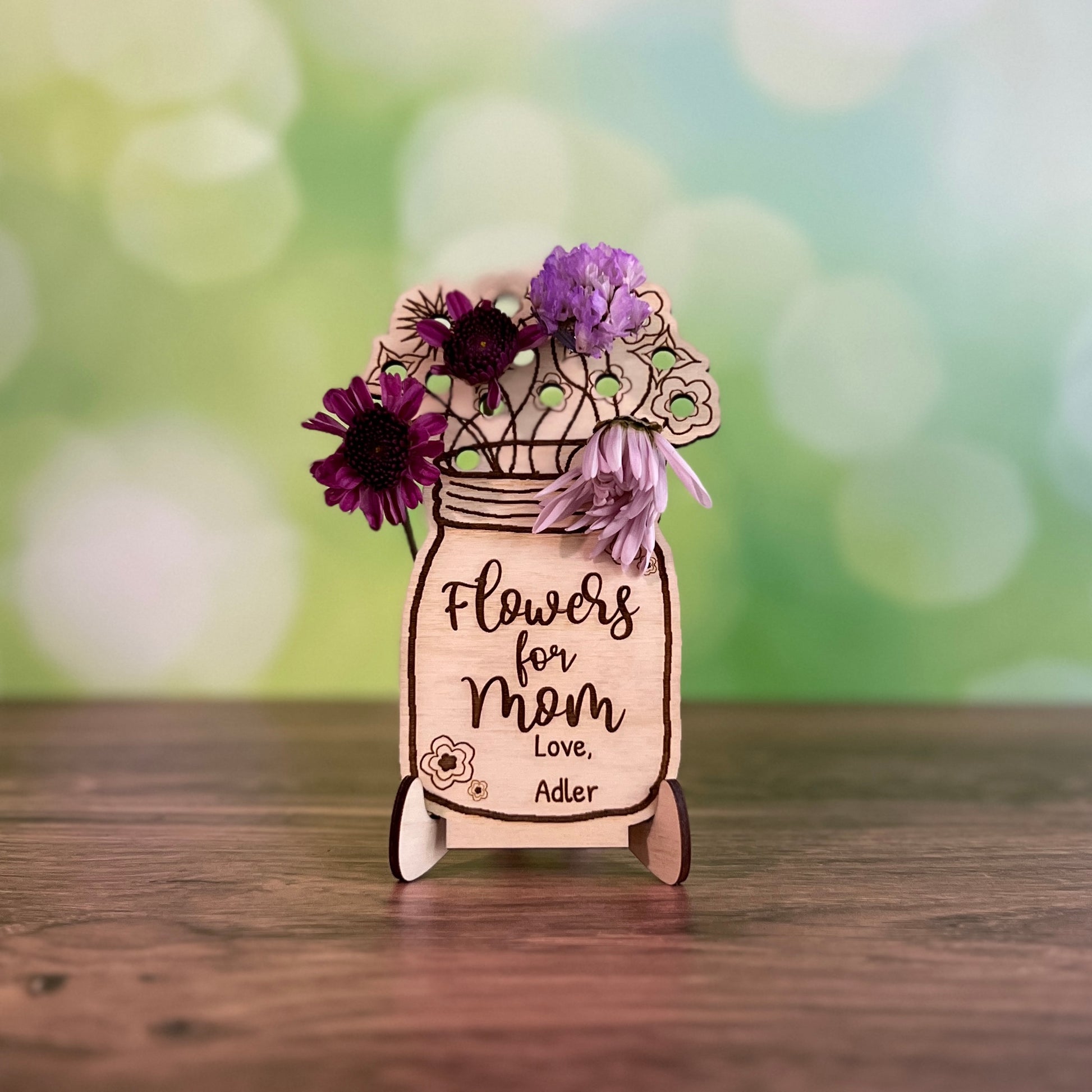 A wooden hand-picked flower holder can make a lovely and unique gift for your mom. Hand-picked flowers from children can make a wonderful and heartfelt gift. Not only is it a sweet gesture, but it also shows the effort and thoughtfulness put into the gift. Hand-picked flowers can be a great way for children to express their creativity and show their appreciation for their loved ones. Additionally, the act of picking the flowers themselves can be a fun and memorable experience for both the children and the recipient of the gift. Overall, hand-picked flowers from children can be a simple yet meaningful way to show love and gratitude.